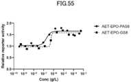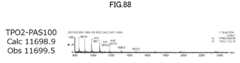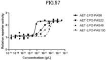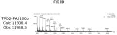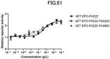 結果を図90に示す。全てのダイマーペプチドを添加した群でMock群に比して高いpCREBレベルが確認された。TPO2-PAS8とTPO2-PAS49はそれぞれ136 %, 131 %とrhTPO刺激群(143%)に近いpCREBレベルを示したのに対し、TPO2-PAS100は112%と低いpCREBレベルであった。また、TPO2-GS8は121%とTPO2-PAS8に比して低いpCREBレベルであった。これらから、短鎖PASリンカーを用いることで長鎖PASリンカーやGSリンカーに比して高いアゴニスト活性が得られることが明らかになった。Example 49: Evaluation of activity of TPO-PAS dimer peptide linker variant Thrombopoietin-like activity of TPO-PAS dimer peptide variant was evaluated by quantification of CREB phosphorylation level of HEL cells, which is a human leukemia-derived blood cell cell line. 200,000 HEL cells were cultured in RPMI1640 medium (Thermo Fisher Scientific) without FBS for 24 hours and starved. Each dimer of these cells at a final concentration of 100 ng / mL recombinant human TPO (rhTPO, Peprotech), or TPO2-PAS8, TPO2-PAS49, TPO2-PAS100 or TPO2-GS8 at a final concentration of 20-40 ng / mL. The culture supernatant containing the peptide was diluted and stimulated in RPMI 1640 medium for 20 minutes. As a negative control, PBS was added and stimulation was performed for 20 minutes (Mock group). After removing the medium and washing the cells once with PBS, the cells were lysed by adding 100 μL of Lysis buffer 17 (R & D Systems) supplemented with Protease inhibitor cocktail (Nacalai Tesque). The lysate was centrifuged at 14,000 G for 5 minutes to give the supernatant as lysate. TPO2-PAS8 was obtained according to the method described in Example 23.