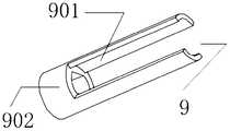 S2.抽动手柄1将内夹10和外夹9收入到套管8内,夹合瓣膜;当然使用前先旋转手柄1依次带动内管2、内夹座102、外夹座902使外夹座902脱离套管8螺纹区,然后抽动手柄1依次带动内管2、内夹座102,内夹座102带动外夹座902收入套管8内,套管8口收合内夹10和外夹9从而夹合住待夹瓣叶,同时,如果二尖瓣瓣叶夹合位置不佳时,可重复夹合,最后将外夹片901外侧底端的卡接凸起卡入套管8口,稳固夹合动作;S2. Twitch the