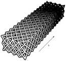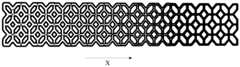 请参阅图2c、图2d,分别显示为基本单元采用另一几何结构的晶格结构立体示意图与平面示意图,如图所示,所述鞋中底中基本单元为类六边形的孔状体,晶格结构实体对应于作为六边形边长的连接杆,位于第一足压干预区域外的晶格结构朝向第一足压干预区域延伸的晶格结构的体积密度逐渐降低;在一实现方式中,例如图示实施例中,顺应朝向第一足压干预区域延伸的方向(呈如图2c、图2d中顺应箭头的X方向),晶格结构基本单元的杆径逐渐减小。令第一足压干预区域之外晶格结构朝向所述至少一个第一足压干预区域之内延伸的晶格结构呈渐变过渡也可通过设置基本单元大小实现,例如,第一足压干预区域之外晶格结构朝向第一足压干预区域的晶格结构基本单元的杆径长度逐渐增加,对应的晶格结构基本单元体积密度逐渐降低,受力强度逐渐减小。Please refer to Figure 2c and Figure 2d, which respectively show a three-dimensional schematic diagram and a plane schematic diagram of a lattice structure in which the basic unit adopts another geometric structure. As shown in the figure, the basic unit in the shoe midsole is a hexagon-like hole-like body. , The lattice structure entity corresponds to the connecting rod as the side length of the hexagon, and the volume density of the lattice structure located outside the first foot pressure intervention area toward the first foot pressure intervention area gradually decreases; In the manner, for example, in the illustrated embodiment, the rod diameter of the basic unit of the lattice structure gradually decreases in accordance with the direction extending toward the first foot pressure intervention area (in the X direction following the arrows in Fig. 2c and Fig. 2d). The gradual transition of the lattice structure outside the first foot pressure intervention area toward the lattice structure extending into the at least one first foot pressure intervention area can also be achieved by setting the size of the basic unit, for example, the first foot pressure intervention area The rod diameter length of the basic unit of the outer lattice structure toward the first foot pressure intervention area gradually increases, the volume density of the corresponding basic unit of the lattice structure gradually decreases, and the force strength gradually decreases.