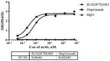 Fig. 3 shows the binding capacity of mouse antibodies B1D2F7D3B5, B8G11F2B7G5E8, B9D1D11F8D8, C2C1A1A1 and C2B2F7B7 to cynomolgus IL4Rα.