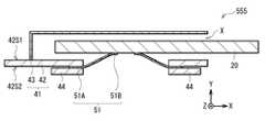 図10は、本開示の第5の実施の形態に係る放熱構造(放熱構造5)の構成を、発熱部を有する電子部品(例えば、記憶媒体20)と共に模式的に表した斜視図である。図11は、図10に示したV-V線における放熱構造5および記憶媒体20の断面構造を模式的に表したものである。この放熱構造5は、上記第1の実施の形態と同様に、後述するカメラ100等の各種電子機器の内部に配置される電子部品の放熱または冷却に用いられるものである。本実施の形態の放熱構造5では、熱伝導部材51の固定部51Aが、支持部材41を構成する支持基板42の面42S1とは反対側の他の面(下面:面42S2)側に固定され、熱伝導部材51の接触部51Bが、支持基板42に設けられた開口42Hを介して支持基板42の面42S1側に突出している点が、上記第4の実施の形態とは異なる。<5. Fifth Embodiment>
