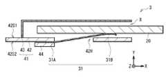 熱伝導部材31は、上記のように支持部材41とは別体で形成された以外は、上述した熱伝導部材11と同様の構成を有している。熱伝導部材31は、中空構造およびバネ性を有する部材によって構成され、例えば、板バネ形状を有するヒートパイプによって形成することができる。熱伝導部材31は、例えば、支持部材41を構成する例えば支持基板42に固定される固定部31Aと、熱源である記憶媒体20の発熱部と接触する接触部31Bとを有しており、固定部31Aは、支持基板42の一の面(上面:面42S1)の、収容部材43と組み合わせることによって形成されるスロットXの内部に固定されている。固定部31Aは、例えばはんだ等を用いて固定することができる。The heat