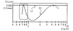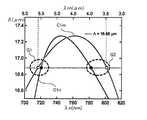 図3は、図2の場合よりも励起波長λpが長い場合の特性曲線C1を例示する。図4は、図2の場合よりも励起波長λpが短い場合の特性曲線C1を例示する。具体的に、図3では励起波長λp=0.85μmに設定し、図4では励起波長λp=0.6μmに設定した。FIG. 3 illustrates a characteristic curve C1 when the excitation wavelength λp is longer than that in the case of FIG. FIG. 4 illustrates a characteristic curve C1 when the excitation wavelength λp is shorter than that in the case of FIG. Specifically, in FIG. 3, the excitation wavelength λp = 0.85 μm was set, and in FIG. 4, the excitation wavelength λp = 0.6 μm was set.