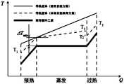 进一步地,通过合理调节各换热器中传热流体的质量流量,如图6和图7所示的本发明实施例与现有传统方案的传热对比示意图,均可以降低各换热器的换热温差,减小换热过程的损,提高发电厂的发电效率。同时,还可选用合理的传热流体温度,以减小再热器23中换热过程的损。Further, by reasonably adjusting the mass flow rate of the heat transfer fluid in each heat exchanger, as shown in Figures 6 and 7 of the heat transfer comparison schematic diagram between the embodiment of the present invention and the existing traditional solution, the heat transfer of each heat exchanger can be reduced. Heat exchange temperature difference, reduce the heat exchange process Loss and improve the power generation efficiency of power plants. At the same time, a reasonable heat transfer fluid temperature can also be selected to reduce the heat transfer process in the