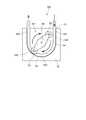 フレーム52は、屈曲して配置される気体配管51の外周部を固定するための部材である。フレーム52は、気体配管51が内部に配置される凹部521を有する。凹部521の縁部は、回転中心50を中心とした円弧状の円弧状部522と、円弧状部522の両端からフレーム52の端部まで開放された開放部523とを有する。The