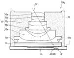 図22A及び図22Bに示すように、第2光反射抑制部56Bは、基本的に上述の第3変形例の第2光反射抑制部56Aとほぼ同様のドット状平面パターンになっており、第2光反射抑制部56Aと異なる点は凸部57a2が円錐台形状になっている。絶縁膜55の厚さt12は、設計値で例えば0.27μmに設定されている。As shown in FIGS. 22A and 22B, the second lightreflection suppression section 56B basically has a dot-like plane pattern substantially similar to that of the second lightreflection suppression section 56A of the third modification described above.2 The convex portion 57a 2 has a truncated cone shape, which is different from the light reflection suppressing portion 56A.The thickness t 12 of the insulatingfilm 55 is set to, for example, 0.27 μm as a design value.