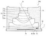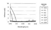 That is, the second lightreflection suppressing portion 56A is on theplane layer 55a thickness 0.1μm of dielectric layer 55 (supporting layer), the diameterd 11 of the bottom surface is 0.34 .mu.m, height 0.22μm cone It is a dot-shaped plane pattern in which theconvex portions 57a1 of the shape are repeatedly arranged at an arrangement pitch P11 of 0.34 μm.