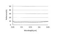 FIG. 6 is a reflection characteristic diagram showing the dependence of the light wavelength and the light reflectance on the surface of thelight shielding film 45 provided with the first lightreflection suppressing portion 46 of the grid-like plane pattern shown in FIGS. 5A and 5B. be.