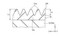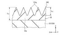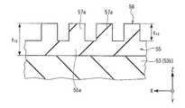 凸部57a2は、高さh13が設計値で例えば0.17μm、底面の直径d11が設計値で例えば0.34μm、上面の直径d12が設計値で例えば0.12μmにそれぞれ設定されている。そして、隣り合う2つの凸部57a2の配列ピッチP11は、設計値で例えば0.34μmに設定されている。The height h13 of theconvex portion 57a2 is set to, for example, 0.17μm, the bottom diameter d 11 is set to, for example, 0.34 μm, and the top surface diameter d12 is set to, for example, 0.12 μm. ing. The arrangement pitch P11 of the two adjacentconvex portions 57a2 is set to, for example, 0.34 μm by the design value.