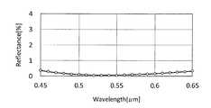 図6は、図5A及び図5Bに示す格子状平面パターンの第1光反射抑制部46が設けられた遮光膜45の表面での光波長と光反射率との依存性を示す反射特性図である。