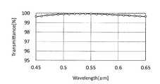 この第6変形例の第2光反射抑制部56Dが設けられた絶縁膜55の光透過率は、概ね100%である。これにより、空気層と接する絶縁膜55の表面での光反射率をほぼ0%に抑えられる。したがって、この第6変形例の第2光反射抑制部56Bにおいても、上述の第1実施形態と同様の効果が得られる。The light transmittance of the insulatingfilm 55 provided with the second lightreflection suppressing portion 56D of this sixth modification is approximately 100%. As a result, the light reflectance on the surface of the insulatingfilm 55 in contact with the air layer can be suppressed to almost 0%. Therefore, the same effect as that of the above-described first embodiment can be obtained in the second lightreflection suppression unit 56B of the sixth modification.