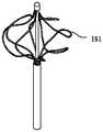 请参阅图11与图12,本申请第四实施方式提供的消融装置与第一实施方式提供的消融装置结构大致相同,不同在于,杆体151的远端从装设套筒157的远端伸入装设套筒157,即杆体151的远端向近端方向收拢。Referring to FIGS. 11 and 12, the ablation device provided by the fourth embodiment of the present application has substantially the same structure as the ablation device provided by the first embodiment, except that the distal end of the