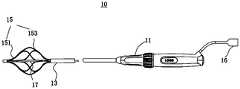 可以理解,在本实施方式中,所述扩张状态下,近端段1511的螺旋角与远端段1513的螺旋角,要小于中间段1515的螺旋角;杆体151的螺旋角的角度,沿杆体151在中间段1515两侧呈对称分布,进一步地,沿杆体151在第一位置点P两侧呈对称分布。It can be understood that in this embodiment, in the expanded state, the helix angle of the