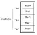 도 19는 바운딩 박스를 하나 이상의 타일들과 하나 이상의 슬라이스들로 분할하는 일 실시예를 보이고 있다.19 shows an embodiment of dividing a bounding box into one or more tiles and one or more slices.