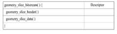 도 33은 실시예들에 따른 지오메트리 슬라이스 헤더의 신택스 구조의 예시를 보인 도면이다.33 is a diagram illustrating an example of a syntax structure of a geometry slice header according to embodiments.