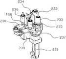 送带组件--23,供带伺服电机--231,供带主动轮--232,第一供带压轮--233,第二供带压轮--234,第三供带压轮--235,第四供带压轮--236,第一供带摆臂--237,第二供带摆臂--238,第一供带气缸--239,第二供带气缸--230,供带升降机构--24,Tape feeding component-23, tape supply servo motor-231, tape supply drive pulley-232, first supply pressure roller-233, second supply pressure roller-234, third supply pressure roller- -235, the fourth supply pressure roller--236, the first supply swing arm--237, the second supply swing arm--238, the first supply cylinder--239, the second supply cylinder--230 , For belt lifting mechanism-24,