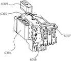 刮边机构--6,刮边架体--61,第一刮边缓冲件--621,第二刮边缓冲件--622,第一刮边组件--63,第一刮边横移滑块--6301,第一刮边横移螺母--6302,第一刮边横移螺杆--6303,第一刮边横移执行器--6304,第一刮边横移框架--6305,第一刮边升降螺母--6306,第一刮边升降滑块--6307,第一刮边升降螺杆--6308,第一刮边升降执行器--6309,第一刮边进退执行器--6310,第一刮边进退螺杆--6311,第一刮边进退螺母--6312,第一刮边刀座--6313,第一刮边刀具--6314,刮边上靠模抵触轮--6316,第三刮边缓冲件--6317,第一刮边侧靠模抵触轮--6318,第一刮边集尘罩--6319,Scraping mechanism-6, scraping frame body-61, first scraping buffer-621, second scraping buffer-622, first scraping assembly-63, first scraping side traverse Slide block-6301, first scraping side traverse nut-6302, first scraping side traverse screw-6303, first scraping side traverse actuator-6304, first scraping side traverse frame-6305 , The first scraping lifting nut-6306, the first scraping lifting slider-6307, the first scraping lifting screw-6308, the first scraping lifting actuator-6309, the first scraping advance and retreat actuator --6310, the first scraping edge advance and retreat screw-6311, the first scraping edge advance and retreat nut-6312, the first scraping knife seat-6313, the first scraping tool-6314, the scraping edge upper profile abutment wheel --6316, the third scraping buffer ---6317, the first scraping side profile abutment wheel ---6318, the first scraping dust cover ---6319,