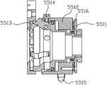 仿形切割机构--55,仿形刀座--551,刀座壳体--5511,刀座活塞--5512,卡爪--5513,卡爪顶柱--5514,导气管--5515,弹性件--5516,仿形集尘罩--5517,仿形刀头组件--552,仿形切割电机--553,Profile cutting mechanism--55, profile knife holder--551, knife holder housing--5511, knife holder piston --5512, jaw --5513, jaw top post --5514, air duct --5515 , Elastic part--5516, profiled dust cover---5517, profiled cutter head assembly--552, profiled cutting motor--553,