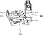 第一仿形横移机构--56,仿形横移电机--561,仿形横移座--562,仿形横移滑块--563,仿形横移滑轨--564,仿形横移齿条--565,仿形横移齿轮--566,水平缓冲气缸--571,水平缓冲滑块--572,水平缓冲导柱--573,第二仿形机构--581,第二仿形横移机构--582,The first profiling traverse mechanism--56, profiling traverse motor--561, profiling traverse seat--562, profiling traverse sliding block--563, profiling traverse sliding rail--564, imitation Shape traverse rack--565, profile traverse gear--566, horizontal cushion cylinder--571, horizontal cushion slider--572, horizontal cushion guide post--573, second profile mechanism--581, The second profiling traverse mechanism-582,