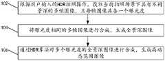 通过HDR算法对多个曝光度的全景深图像进行合成,生成高动态范围图像。The HDR algorithm is used to synthesize panoramic deep images with multiple exposures to generate high dynamic range images.