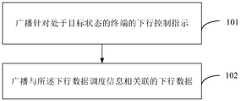 广播针对处于目标状态的终端的下行控制指示,所述下行控制指示包括用于指示当前存在针对所述终端的下行数据调度信息的第一指示符,所述目标状态包括空闲状态或非激活状态;Broadcasting a downlink control instruction for a terminal in a target state, the downlink control instruction including a first indicator for indicating that there is currently downlink data scheduling information for the terminal, and the target state includes an idle state or an inactive state;