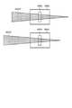 また、インジケータ204は色彩や白黒の濃淡が場所ごとに異なる検出するのではなく、形状によって検出してもよい。例えば、図4Cのように、一方は太く、他方は細い部材で構成されたインジケータ204であってもよい。この場合、調整機構での調整によってレンズ206と連動してインジケータ204が移動することで、カメラで撮像するインジケータ204の検出場所が変化する。具体的には、図4Bの場合と同様、図4Cの上図の状態から下図の状態にインジケータ204の位置が変化する場合、検出場所によって検出されるインジケータ204の幅は、広い検出結果から狭い検出結果に変化する。Further, the
