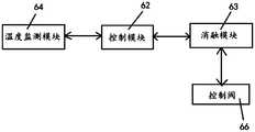消融主机60包括控制模块62、消融模块63、温度监测模块64。控制模块62分别与温度监测模块63、消融模块64连接。其中,冷冻液循环管路上的控制阀66与消融模块63连接,第一测温传感器52、第二测温传感器41、第三测温传感器42分别与温度监测模块64连接。The