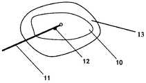 一个有效的热疗必须将被治疗组织中的温度分布控制在适宜范围内,因此对组织温度进行准确测控非常重要。目前,临床上多采用的有创测温技术也称侵入式测量。如图1所示,在消融探针11的远端设置有测温传感器12,测温传感器12与消融探针11连接,通过把热电偶、热敏电阻之类的测温传感器12与消融探针11一起放置到肿瘤组织10内(也在肿瘤组织与正常组织的交界区13内)待测部位进行单点或多点的直接测温。An effective hyperthermia must control the temperature distribution in the treated tissue within an appropriate range, so it is very important to accurately measure and control the tissue temperature. At present, the most commonly used clinically invasive temperature measurement technology is also called invasive measurement. As shown in Figure 1, a