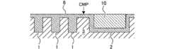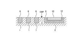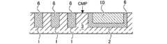図3Eに示すように、平坦化工程の後、第1配線溝1内の金属間化合物6の高さが所定の高さに達するまで第2金属10、金属間化合物6、および絶縁層3を研磨する高さ調整工程が行われる。この高さ調整工程も、CMP(化学機械研磨)工程であり、CMP装置によって実行される。より具体的には、第2研磨パッド上に第2研磨液を供給しながら、第2金属10、金属間化合物6、および絶縁層3を第2研磨パッドに摺接させる。第2金属10、金属間化合物6、および絶縁層3は、第2研磨液の化学的作用と、第2研磨液に含まれる砥粒および/または第2研磨パッドの機械的作用により、研磨される。As shown in FIG. 3E, after the flattening step, the