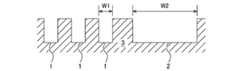 図1A乃至図1Dは、バリアメタルフリー金属配線構造を製造する方法の一実施形態を説明する図である。図1Aに示すように、第1配線溝1と第2配線溝2が形成された絶縁層3が用意される。絶縁層3は、ウェーハ、基板、パネルなどのワークピースに形成されている。絶縁層3を構成する材料は、例えば、二酸化ケイ素(SiO2)であり、絶縁層3は、例えば、シリコン酸化膜である。第1配線溝1の幅W1は、第2配線溝2の幅W2よりも狭く、一実施形態では、第1配線溝1の幅W1は、7nmよりも小さい。Hereinafter, embodiments of the present invention will be described with reference to the drawings.