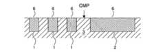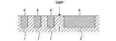 高さ調整工程は、金属間化合物6の除去レートが絶縁層3の除去レートと同じか、またはそれよりも低い除去レート選択比を持つ第2研磨液を使用して行われる。具体的には、第2配線溝2内の金属間化合物6を研磨しているときにディッシングが起こることが予想される場合には、金属間化合物6の除去レートが絶縁層3の除去レートよりも低い除去レート選択比を持つ第2研磨液が使用される。一方、第2配線溝2内の金属間化合物6を研磨しているときにディッシングが起こらないと予想される場合には、金属間化合物6の除去レートが絶縁層3の除去レートと同じ除去レート選択比を持つ第2研磨液が使用される。The height adjusting step is performed using a second polishing liquid having a removal rate selectivity at which the removal rate of the