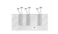 図12Aおよび図12Bは、従来の配線構造の他の例を示す断面図である。図12Aに示すように、配線溝200が形成された絶縁層(例えば、シリコン酸化膜)201上にバリアメタル205が堆積される。シード層207は、バリアメタル205の上に堆積され、配線溝200はシード層207で満たされる。さらに銅208がシード層207上に堆積される。その後、CMP(化学機械研磨)により余剰の銅208およびシード層207、および絶縁層201の一部が除去され、図12Bに示すように、シード層207からなる配線が形成される。12A and 12B are cross-sectional views showing another example of the conventional wiring structure. As shown in FIG. 12A, the