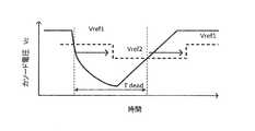 電圧レベルVsをハイレベルまたはローレベルに切り替えるしきい値電圧は、基準電圧の電位に対応する。基準電圧の電位は、電圧制御回路162によって変化する。電圧制御回路162のスイッチング素子174がオンすると、基準電圧の電位は低くなる。反対に、スイッチング素子174がオフすると、基準電圧の電位は高くなる。The threshold voltage that switches the voltage level Vs to high level or low level corresponds to the potential of the reference voltage. The potential of the reference voltage is changed by the
