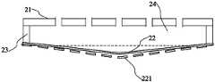 图6、7示出了在施加工作偏压的情况下振膜22的两种状态。如图6所示,在施加工作偏压的情况下,振膜22离开原始的位置221,但是,仍然位于虚线所示的振膜平整位置之外(远离背极板21)。在图7中,在施加工作偏压的情况下,振膜22离开原始的位置221,并且位于虚线所示的振膜平整位置之内(靠近背极板21)。Figures 6 and 7 show two states of the