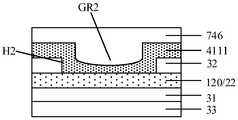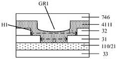 例如,第一子发光元件411a的阳极4111包括第一凹槽结构GR1,第一凹槽结构GR1位于第一过孔H1内,且第一凹槽结构GR1的底部与第一连接线110接触以实现电连接。通过将阳极4111沉积在第一过孔H1中的部分设置为凹槽结构,可以减小该部分的厚度,使该部分的厚度与阳极4111的其他部分的厚度差异不大,从而在整体上提高透射光线的均一性,使不同区域无明显的亮度差异,并且使第一显示区域11具有较好的透光性,进而有助于提升屏下传感器(例如摄像头)的感测效果,例如使成像更清晰。由于第一过孔H1为倒凸台形状,因此在制备阳极4111时,有利于形成该凹槽结构,可以降低工艺难度。For example, the