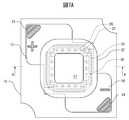μLEDチップ360は、LEDチップ20と同様な半導体素子であるが、LEDチップ20の縦横の外形寸法が650μm×650μm程度であるのに対して、縦横の外形寸法が50μm×50μm程度と非常に小さい。図38Aには記載していないが、各μLEDチップ360は、ワイヤ21によって、アノード配線15及びカソード配線16と接続されている。また、図38Aには9個のμLEDチップ360に限定されず、特に輝度ムラが発生しそうな箇所に配置して輝度ムラ補正に利用することができる。また、μLEDチップ360が出射する色は青色光に限定されず、様々な発光色のμLEDチップを利用することが可能である。TheμLED chip 360 is a semiconductor element similar to theLED chip 20, but the vertical and horizontal external dimensions of theLED chip 20 are about 650 μm × 650 μm, whereas the vertical and horizontal external dimensions are very small, about 50 μm × 50 μm. .. Although not shown in FIG. 38A, eachμLED chip 360 is connected to theanode wiring 15 and thecathode wiring 16 by awire 21. Further, FIG. 38A is not limited to the nineμLED chips 360, and can be arranged in a place where luminance unevenness is likely to occur and used for luminance unevenness correction. Further, the color emitted by theμLED chip 360 is not limited to blue light, and μLED chips having various emission colors can be used.