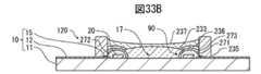 第2封止材272は、青色の光を吸収して赤色の光を出射するCaAlSiN3等の蛍光体を含有するシリコーン樹脂等の合成樹脂である。第2封止材272によってLEDチップ20が封止されることによって、第2封止材272からは主に赤色光が出射される。そのために、便宜上、図33Aにおいて、第2封止材272によって封止されるLEDチップ20に、文字「R」を付している。Thesecond encapsulant 272 is a synthetic resin such as a silicone resin containing a phosphor such asCaAlSiN 3 that absorbs blue light and emits red light. When theLED chip 20 is sealed by thesecond sealing material 272, red light is mainly emitted from thesecond sealing material 272. Therefore, for convenience, in FIG. 33A, the letter "R" is attached to theLED chip 20 sealed by thesecond sealing material 272.