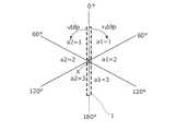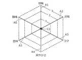 また、ユーザは、入力対象の軸の順序を任意に選定することができる。すなわち、時計周りまたは反時計周りに順に軸を選択する必要は必ずしもない。この場合、例えば、全ての軸に対して入力が完成した時点で各頂点を結ぶ線を描画すればよい。In addition, the user can arbitrarily select the order of the axes to be input. That is, it is not always necessary to select the axes clockwise or counterclockwise. In this case, for example, a line connecting the vertices may be drawn when the input is completed for all the axes.