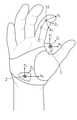 図8に、センサ1の座標系1、センサ2の座標系2、及び、人差し指の末節51の座標系3の例を示す。なお図8には人差し指の末節51以外の関節部も丸の記号で示されている。FIG. 8 shows an example of the coordinate