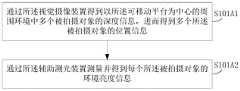 子步骤S101A1:通过所述视觉摄像装置得到以所述可移动平台为中心的周围环境中多个被拍摄对象的深度信息,进而得到多个所述被拍摄对象的位置信息。Sub-step S101A1: Obtain depth information of a plurality of photographed objects in a surrounding environment centered on the movable platform by the visual camera device, and further obtain position information of a plurality of the photographed objects.