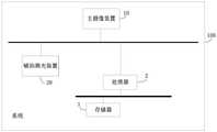 所述系统100包括:主摄像装置10、辅助测光装置20、存储器1和处理器2,主摄像装置10、辅助测光装置20、存储器1分别和处理器2通过总线连接。The