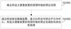 子步骤S101B2:通过所述视觉摄像装置,建立以所述可移动平台为中心、所述主摄像装置的周围环境的预定范围的局部亮度地图。Sub-step S101B2: Using the visual camera device, establish a local brightness map with the movable platform as the center and a predetermined range of the surrounding environment of the main camera device.