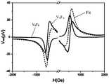 图7为所述混合电压Vmix的波形图,虚线表示所述自旋电子器件在6GHz频率下的数据拟合曲线,深色曲线表示异质结中τFL驱动的磁化结果,浅色曲线表示异质结中τDL驱动的磁化结果。深色曲线具有反对称洛伦兹线形状,浅色曲线与深色曲线具有额外的90°相位差。因此,在共振场中,τDL驱动力矩是同相(δ=0),导致产生洛伦兹对称线形状,其中,自旋霍尔角(θsh)可由VS/VA计算获得,VS和FS为测量的对称洛伦兹分量,VA和FA为反对称洛伦兹分量。7 is a waveform diagram of the mixed voltage Vmix, the dotted line represents the data fitting curve of the spintronic device at a frequency of 6 GHz, the dark curve representsthe magnetization result driven by τ FL in the heterojunction, and the light curve represents the heterojunction.τ DL- driven magnetization results in a mass junction. The dark curve has an antisymmetric Lorentzian line shape, and the light curve has an additional 90° phase difference from the dark curve. Thus, the resonance field, τDL drive torque is in phase (δ = 0), resulting in a symmetrical Lorentzian line shape, wherein the spin Hall angle (θsh) by VS / VA obtained by calculation, VS, and symmetrical Lorentzian component FS is the measured, Va and Fa is the Lorentz antisymmetric component.