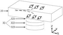 在一些实施方式中,所述铁电/铁磁异质结构31、所述磁隧道结32以及所述重金属层33构成堆叠结构,这样的设计允许在同一结构上进行读写操作,只使用小电流以及外加电场实现信息的确定性写入。所述铁电/铁磁异质结构31和所述磁隧道结32可以均为圆柱状结构,所述重金属层33可以为条状结构。当然,所述铁电/铁磁异质结构31和所述磁隧道结32还可以均为长方体状结构或者为环状结构等其它形状叠层结构,本公开对此不进行 限定。所述重金属层33还可以为方形等其他形状,只要保证所述重金属层33具有相对的两端,在外加电场时能够有电流从所述重金属层33的一端流向相对的另一端,从而能够在所述重金属层33产生自旋霍尔效应即可。In some embodiments, the ferroelectric/