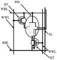 所述第一晶体管Q1的一端和所述自旋电子器件800的多铁性材料层用于连接写位线WBL,所述第一晶体管Q1的另一端连接所述自旋电子器件800的重金属层的一端,所述第一晶体管Q1的控制端用于连接写字线WWL。所述第二晶体管Q2的一端用于连接读位线RBL,所述第二晶体管Q2的另一端连接所述自旋电子器件800的参考层,所述第二晶体管Q2的控制端用于连接读字线RWL。所述自旋电子器件800的重金属层的另一端用于连接源线SL,所述自旋电子器件800的重金属层的另一端与所述自旋电子器件800的重金属层的一端相对设置。在一些实施方式中,所述第一晶体管Q1和所述第二晶体管Q2可以为NMOS晶体管,所述第一晶体管Q1的一端和所述第二晶体管Q2的一端为NMOS晶体管的漏极,所述第一晶体管Q1的一端和所述第二晶体管Q2的另一端为NMOS晶体管的源极,所述第一晶体管Q1的一端和所述第二晶体管Q2的控制端为NMOS晶体管的栅极。当然,所述第一晶体管Q1和所述第二晶体管Q2还可以为其他具有开关功能的晶体管,本公开对此不进行限定。One end of the first transistor Q1 and the multiferroic material layer of the