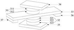 当所述自旋电子器件与外部电路连接时,通常需要通过电极与外部电路连接。因此,所述自旋电子器件还可以包括第一电极34、第二电极35、第三电极36以及第四电极37。所述第一电极34与所述多铁性材料层311连接,即所述多铁性材料层311的一个底面连接所述铁磁层312,所述多铁性材料层311的另一个底面连接所述第一电极34。所述第二电极35与所述参考层323连接,即所述参考层323的一个底面连接所述绝缘层322,所述参考层323的另一个底面连接所述第二电极35。所述第三电极36与所述重金属层33的一端连接,所述第四电极37与所述重金属层33的另一端连接,所述重金属层33的一端和所述重金属层33的另一端相对设置。在一些实施方式中,所述第三电极36和所述第四电极37设置在所述重金属层33与所述自由层321连接的一面,在其他实施方式中,所述第三电极36和所述第四电极37也可以设置在所述重金属层33与所述铁磁层312连接的一面,或者设置在所述重金属层33的侧面,本公开对此不进行限定。所述第一电极34、所述第二电极35、所述第三电极36以及所述第四电极37的材料和厚度可根据实际应用场景进行选取,在一些实施方式中,所述第一电极34、所述第二电极35、所述第三电极36以及所述第四电极37的材料可以为Cu、Au、W、Pt等材料,所述第一电极34、所述第二电极35、所述第三电极36以及所述第四电极37的厚度为纳米量级。When the spintronic device is connected to an external circuit, it is usually necessary to connect to the external circuit through electrodes. Therefore, the spintronic device may further include a