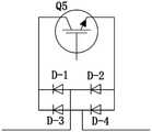 具体地,图6中展示的开关模块300包括第一二极管D-1、第二二极管D-2、第三二极管D-3、第四二极管D-4和第五开关管Q5,第一二极管D-1和第二二极管D-2串联形成 二极管第一支路,第三二极管D-3和第四二极管D-4相互串联形成二极管第二支路,第五开关管Q5、二极管第一支路和二极管第二支路相互并联,第一二极管D-1和第二二极管D-2的连接点引出作为开关模块300的一端,第三二极管D-3和第四二极管D-4的连接点引出作为开关模块300的另一端。其中,开关模块300的闭合状态对应于第五开关管Q5导通,开关模块300的断开对应于第五开关管Q5截止。Specifically, the