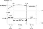 도 27은 일 실시 예에 따른 에어로졸 생성 장치에서 전극의 충전 시간이 변화함에 따라 히터에 공급하는 전력을 제어하는 그래프를 도시한다.27 shows a graph for controlling the power supplied to the heater according to the change in the charging time of the electrode in the aerosol generating device according to an embodiment.