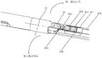 例如,在可分离连接结构6驱动闭合机构朝向末端执行器1移动的过程中,可分离连接结构6的第一端通过第一连接结构与第二驱动机构20连接,可分离连接结构6的第二端通过第二连接结构与闭合机构连接;可分离连接结构6配置为可相对于第一连接结构和第二连接结构沿纵向移动而使可分离连接结构6的第二端与闭合机构分离或使可分离连接结构6的第一端与第二驱动机构20分离。For example, when the detachable connectingstructure 6 drives the closing mechanism to move toward theend effector 1 , the first end of the detachable connectingstructure 6 is connected to thesecond driving mechanism 20 through the first connecting structure, and the first end of the detachable connectingstructure 6 is connected with thesecond driving mechanism 20 . The two ends are connected with the closing mechanism through a second connecting structure; the separable connectingstructure 6 is configured to be movable longitudinally relative to the first connecting structure and the second connecting structure to separate the second end of the separable connectingstructure 6 from the closing mechanism or The first end of thedetachable connection structure 6 is detached from thesecond drive mechanism 20 .