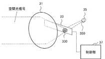 液晶レンズ33(可変レンズとも呼ぶ)は、集光レンズ31の後段に配置される。液晶レンズ33は、その入射面が集光レンズ31の出射面と対面するように配置される。液晶レンズ33は、空間光信号の到来方向に合わせた形状に設定される。例えば、水平方向から空間光信号が到来する場合、液晶レンズ33は、水平方向に長軸を有し、垂直方向に短軸を有する形状に設定される。例えば、水平面に対して垂直な方向(以下、垂直方向とよぶ)から空間光信号が到来する場合、液晶レンズ33は、垂直方向に長軸を有し、水平方向に短軸を有する形状に設定される。液晶レンズ33の形状は、空間光信号の到来方向に合わせて設定されればよい。A liquid crystal lens 33 (also called a variable lens) is arranged behind the